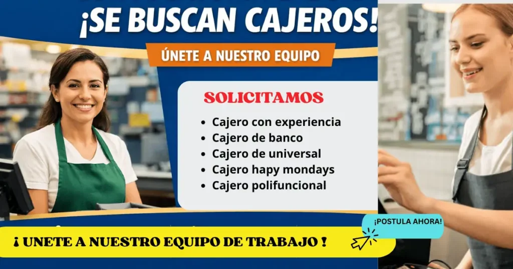 Vacantes para cajeros con oportunidades laborales en supermercados, bancos y tiendas. Incluyen funciones claras, requisitos básicos y beneficios atractivos para quienes buscan estabilidad y crecimiento.