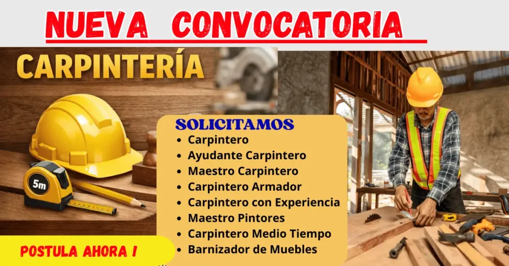 Oportunidades laborales en carpintería con vacantes disponibles. Conoce funciones, requisitos y beneficios en empleos relacionados con fabricación de muebles, instalación, diseño y trabajos profesionales en madera.