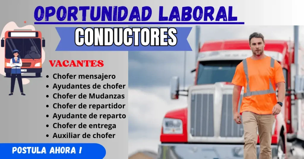 Vacantes para conductores disponibles: transporte escolar, reparto, carga y personal. Ofrecen salario competitivo, beneficios, estabilidad laboral y crecimiento profesional. Requieren licencia vigente y experiencia comprobable.
